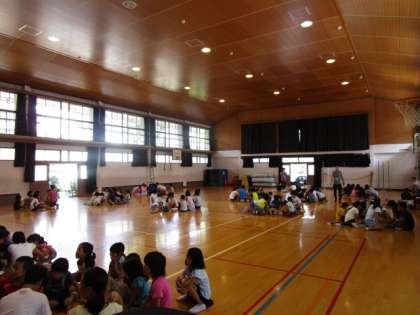 9月2日(水),ゴールデン昼休みを利用してたてわりあそび(なかよしあそび)をしました。「なかよし委員会」が中心に提案・企画・進行をして,楽しく遊ぶことができました。運動場と体育館に分かれて行いました。異学年グループで遊びを考え,途中でもっとおもしろい遊びはないかを考えて改善したり,年上の子がリーダーシップをとったりして,有意義な時間を過ごすことができました。