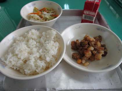 給食の食器が今までのアルマイトの食器からPEN食器という食器にかわりました。見た目もよく,よりおいしく感じることができます。