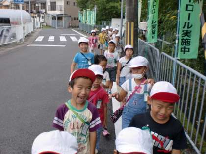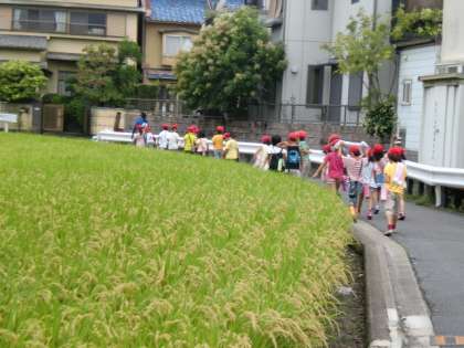 今度は田んぼ沿いをずっと下って,八反田を経由して小学校へ帰ってきました。