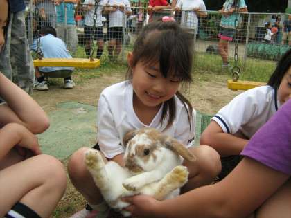 飼育委員会主催のうさぎとふれあう会が中間休みになりました。いつもは、小屋の外から見ているうさぎの背中をなでたり、だっこをしたりと、たくさんふれあうことができました。