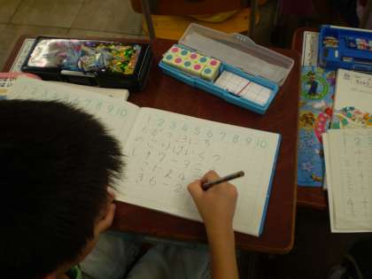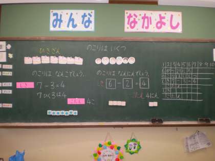 ひき算の学習が始まりました。子どもたちは,数図ブロックを動かして式と答えを考え,ノートにかいています。発表も上手に出来るようになってきました。