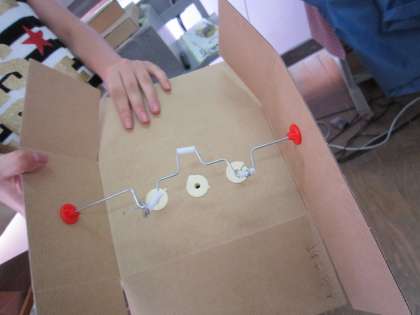 工作でクランクで動くおもちゃを製作しています。今日はクランクの仕組みを作りました。針金を巻いたり、伸ばしたり必死にやりました。