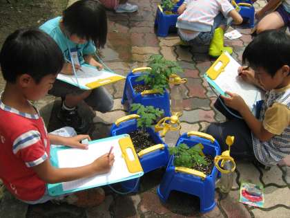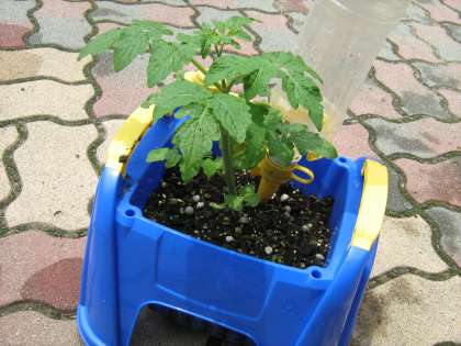 ミニトマトの苗が,茎もどっしりと,本葉の数の増えて