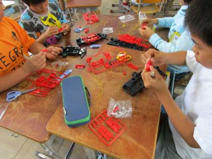 4年生では理科の学習でソーラーカーを作っています。太陽光の力で動く自動車が完成するのが楽しみです。