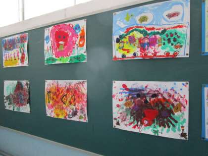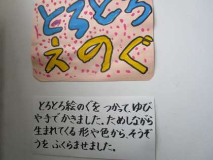 とろとろえのぐを使って絵を描きました。指や手を使って描きました。