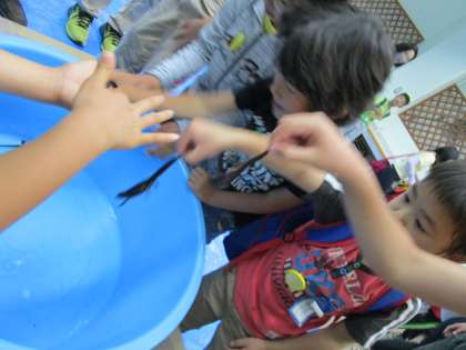 くすのき学級の子どもたちは,屋外学習の後,生き物と触れ合う体験をし,プラネタリュウム学習をした後,最後に実験(4,5年)と展示学習(2年)に分かれて学習しました。