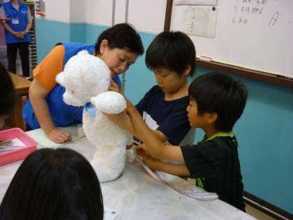 ものをつくる体験では、ワコールで働いておられた方々の協力のもと、服をつくるという体験をさせていただきました。服が採寸→デザイン→裁断→縫製という過程でつくられていることを学びながら、一人一人がオリジナルの服を制作していました。