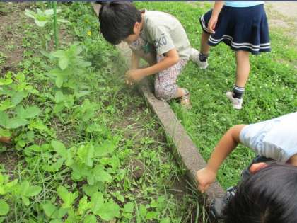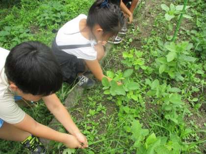 オクラと見間違えるほど大きくなった雑草に子どもたちは苦戦していました。