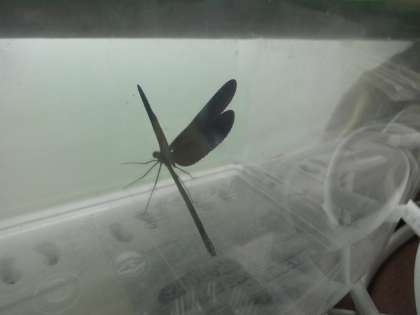 小さな虫かごの中には黒いとんぼが!