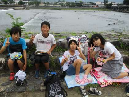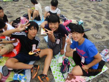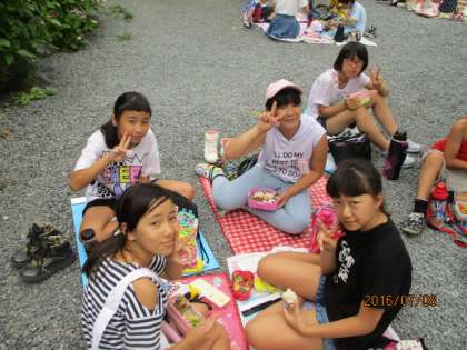 雨も止んで,グループごとにかたまっておいしいお弁当を食べました。