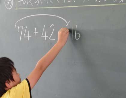 筆算のときと同様にブツブツ暗算をしています。