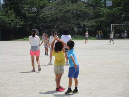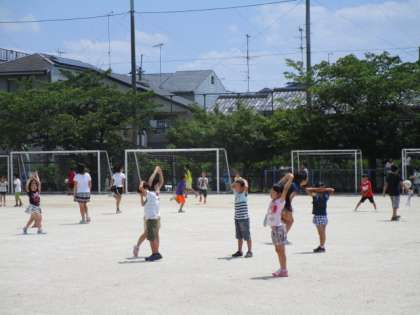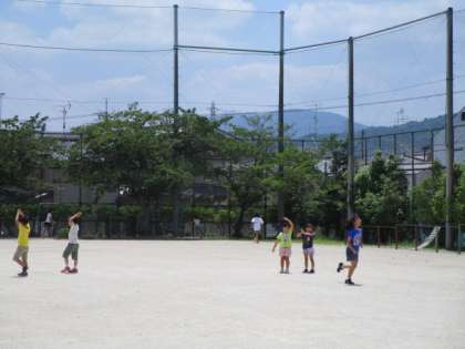 運動委員会主催の「バナナおにごっこ大会」が行われました。タッチされたら「バナナ」と言ってバナナのポーズをとります。なかまの助けが来るまで動けません。いろいろな学年の子どもたちが大勢で楽しみました。