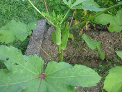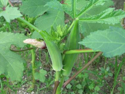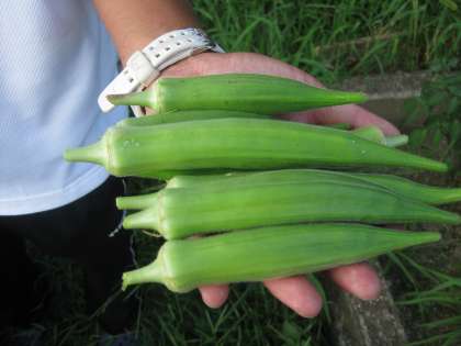 先日,きれいに花を咲かせたオクラが立派な実をつけました。