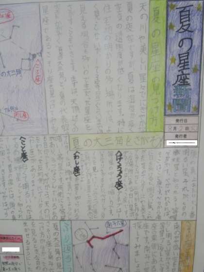 夏休みの宿題で作成した「○○新聞」を教室前の廊下等に展示しています。それぞれの興味に沿って作成した新聞なので個性があふれています。今年はやはりオリンピック関係の新聞が多かったようです。他の学年もそれぞれの教室前に展示していますのでぜひご覧ください。