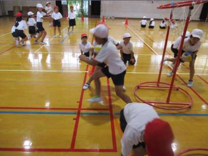 3年生障害物競走のタイトルは,うずリンピック!