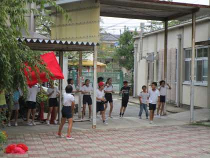 運動会の応援係が休み時間も利用して練習をしています。本番を目の前にして仕上げの段階です。