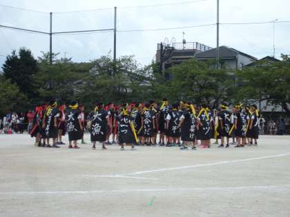 今年の4年生は『ソーラン節』に挑戦しました。夏休み明けすぐに,教室からソーラン節の掛け声がよく聞こえてきていました。本番では,気合の一言が入ったお揃いの法被で,練習以上に元気よく力いっぱい,天まで思いの届くソーラン節を披露しました。