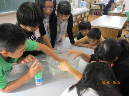 どのグループも2回実験をして,二酸化炭素が水に溶けたことを実感しました。