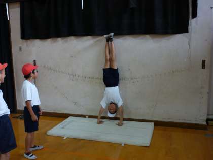 マット運動の学習に意欲的に取り組んでいます。ロンダート・倒立前転・伸しつ後転などに挑戦するため,練習の場を作り,練習しています。友だちが技ができたら「すごい!」と認め合う姿が印象的でした。今後も発表会に向けて練習していきます。