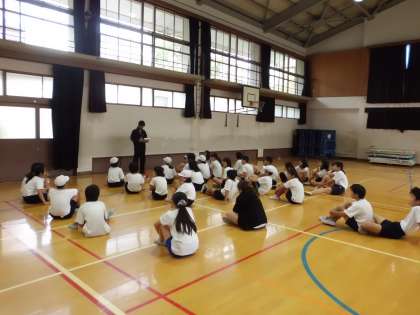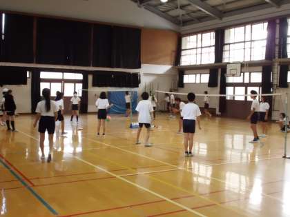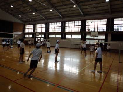 6年生のソフトバレーボールの学習では,相手のコートにボールを返すだけではなく,チームでボールをつないで返すことをねらいとしています。まだまだチームとしての作戦がうまくいない面もありますが,ルールを守って楽しく活動をしています。