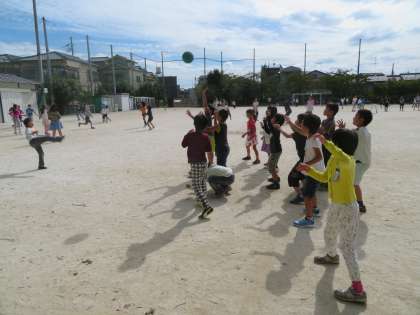 2組はドッジボールで遊びました。