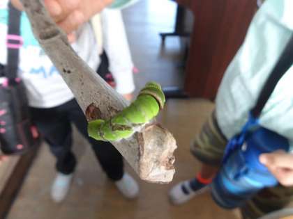 帰りに2年生の教室前を通ると幼虫を発見!!