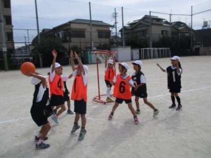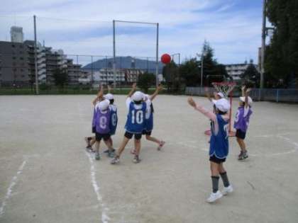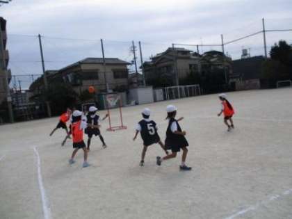 体育科のパスゲームでは,チームで協力することを頑張っています。