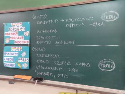 前期半年間取り組んできた「あいさつ・そろえる」