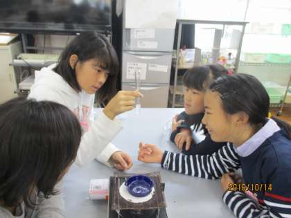 出てきた白い粉を,塩酸に入れてみました。