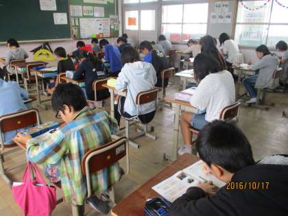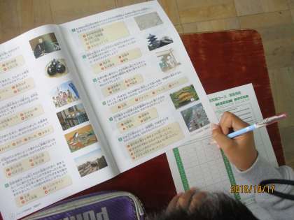 たくさんの人が,検定が終わるとすぐにジュニア京都検定のテキストブックを開いて,答えを確かめていました。
