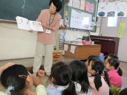 国語でくじらぐもの勉強をしています。浅野先生に来ていただき,くじらぐもの作者である,なかがわりえこさんの他の読み物を紹介していただきました。子どもたちのよく知っている「ぐりとぐら」がなかがわさんの書いた本だと知って驚いていました。図書館で早速「ぐりとぐら」のシリーズを借りている子もいました。