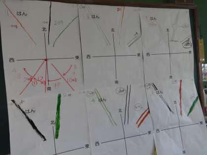 学習したことから太陽の方向を確認し,動きを想像してみました。