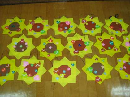 「ひまわりとせみ」のリースを 全校に飾ってもらえるように作りました。