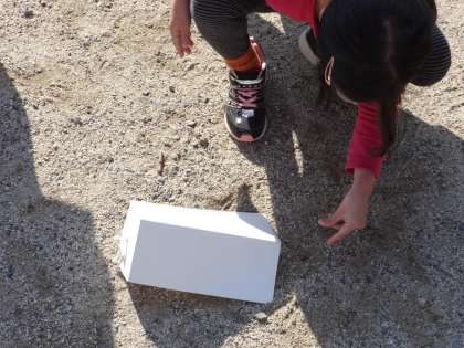 正午の温度計を見ると「上がってる〜!」と大喜び!