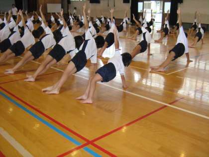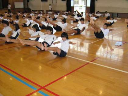 組体操の練習を 汗いっぱいでがんばっています。