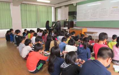 音楽の学習時間だけでなく,給食の準備中,給食後,帰る用意が終わった後の時間に,リコーダーや合奏の練習をしています。