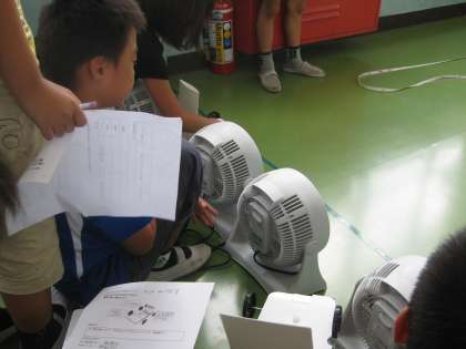 理科の学習で,送風機を使って風の働きを調べました。