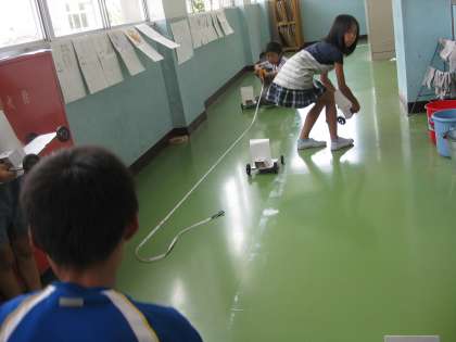 車を走らせて,とても楽しく実験をしました。