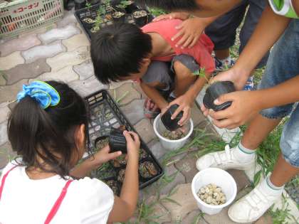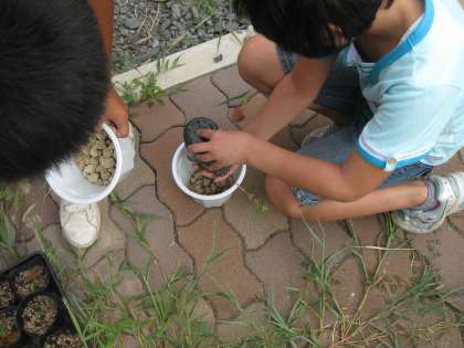 鉢に植えかえる作業をしました。