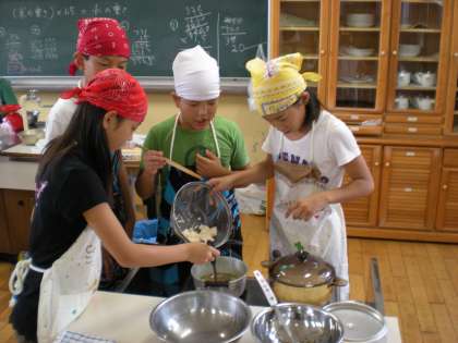 みそ汁の具は班のみんなが一品ずつ持ち寄り作りました。
