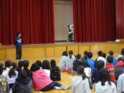 幕と幕の間を通り抜けるキャラクターの絵を当てる