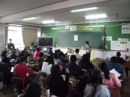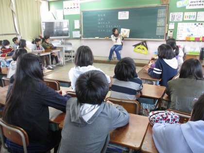 今朝は読書週間の取組の一環として,ぽぷらさんによる読み聞かせがありました。1組は,『くもの糸』・2組は,『寿限無』を読んでいただきました。