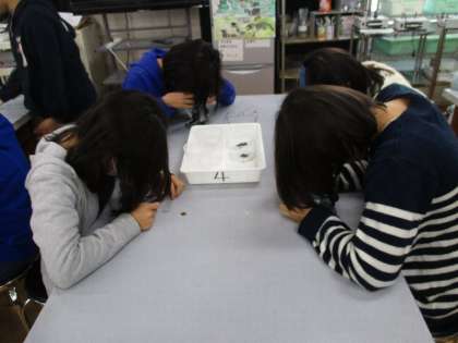 理科では,火山灰を双眼実体顕微鏡で観察する学習をしました。