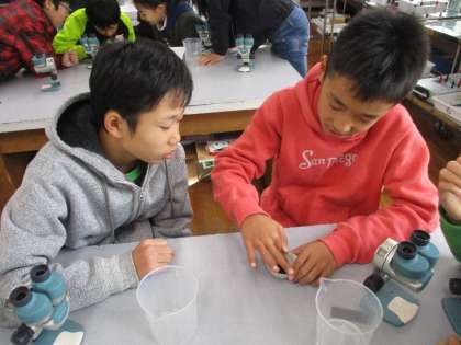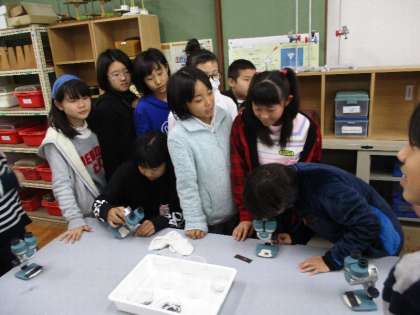 その後,火山灰を洗って,再度観察する活動も行いました。