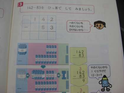 算数でくり下がりが2回の筆算を学習しました。