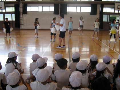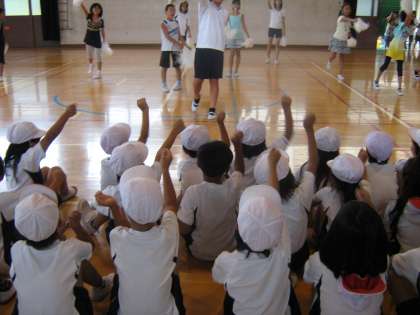 応援団のお兄さんお姉さんに応援を教えてもらって