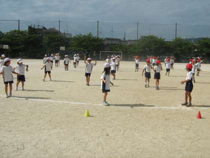 運動会のダンスを,入場と退場の仕方も合わせて練習しました。
