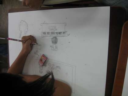 今日は,前回のイメージスケッチをもとに画用紙に下書きを