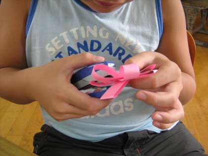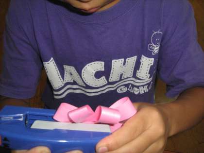 「コスモス」の 真ん中にホッチキスで止めるのが、なかなか難しいのです。