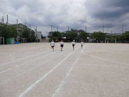 100m走をしたあと,初めて運動場で騎馬戦の練習を行いました。